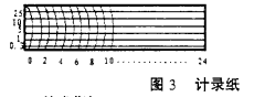 記錄紙其長度和寬度根據(jù)記錄設(shè)備要求,其橫坐標可以設(shè)計成以小時為單位,也可以設(shè)計成以天為單位,可以根據(jù)用戶要求設(shè)計成不同型式,其縱坐標也是根據(jù)流量公式Q=CHN計算得到,量程可自己選擇,其樣式可參見圖3。