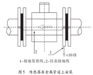 (1)傳感器在金屬管道上安裝(金屬管道內(nèi)壁沒有絕緣層),如圖5。