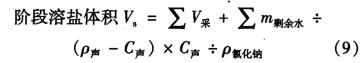 由于每次測(cè)腔都有等待和準(zhǔn)備時(shí)間,所以腔內(nèi)鹵水濃度會(huì)繼續(xù)升高,腔體體積擴(kuò)大。故該階段溶鹽體積應(yīng)按照式(9)計(jì)算: