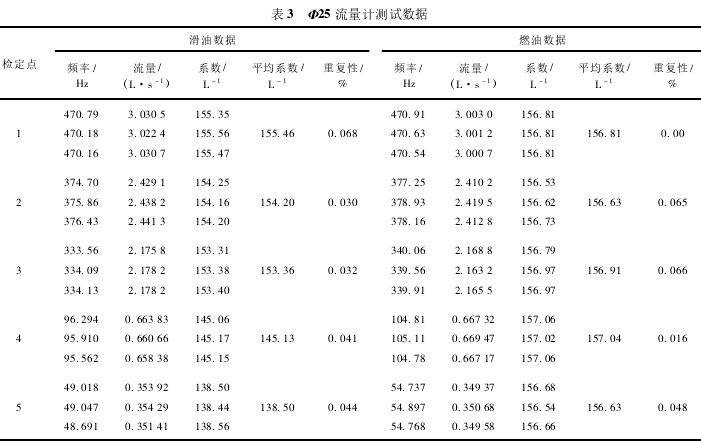 Φ25流量計(jì)測試數(shù)據(jù)如表3所示。