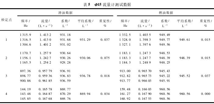 Φ15流量計(jì)測試數(shù)據(jù)如表5所示。