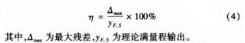 本文采用*小二乘法進(jìn)行線性度評(píng)定,即擬合直線為*小二乘直線。*小二乘直線保證了傳感器至極輸出的平均值對(duì)它的偏差的平方和為*小,即可以保證擬合直線得到的結(jié)果與實(shí)測(cè)結(jié)果之間的偏差很小,更具可靠性。根據(jù)定義,線性度即是校準(zhǔn)曲線對(duì)這條*小二乘擬合直線的偏離程度。