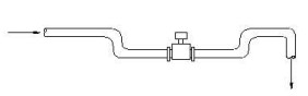 4.當(dāng)向下管道長度超過5m時(shí),在傳感器后安裝一個(gè)虹吸管或一個(gè)放氣閥。以避免低壓而可能造成的對測量管襯里的破壞。保證滿管,減少含氣量。