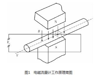 油田污水流量計(jì)廠家是利用法拉*電磁感應(yīng)定律設(shè)計(jì)的流量測量儀表,用于測量導(dǎo)電液體的體積流量。根據(jù)法拉*電磁感應(yīng)定律,當(dāng)導(dǎo)體切割磁力線運(yùn)動(dòng)時(shí),導(dǎo)體內(nèi)將產(chǎn)生感應(yīng)電動(dòng)勢Ex(圖1),方向根據(jù)右手定則確定,感應(yīng)電動(dòng)勢Ex的大小與磁場的磁感應(yīng)強(qiáng)度B、傳感器管道的內(nèi)徑D和流過導(dǎo)電液體的流速V成正比,B、D、V三者相互垂直,即Ex=BDV。