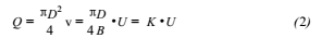 式(1)說(shuō)明,導(dǎo)體在磁場(chǎng)內(nèi)作切割磁力線運(yùn)動(dòng),導(dǎo)體兩端產(chǎn)生的感應(yīng)電動(dòng)勢(shì)的大小與磁感應(yīng)強(qiáng)度B成正比,與導(dǎo)體的長(zhǎng)度D成正比,與導(dǎo)體運(yùn)動(dòng)的速度v成正比。由式(2)可知液體的體積流量與感應(yīng)電動(dòng)勢(shì)成正比,這就是污水流量計(jì)生產(chǎn)廠家的設(shè)計(jì)原理。