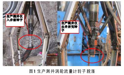 (4)減少工具入井時間,保持對轉(zhuǎn)子轉(zhuǎn)速的監(jiān)控,發(fā)現(xiàn)異常立即采取措施。在保證測試得到的流壓穩(wěn)定,即流壓波動差值不超過2個psi的前提下,盡量減少流壓測量時間,由30min流壓點測時間減少至10min,10min流壓點測時間減少至2min。實踐證明現(xiàn)場應(yīng)用采取的措施有效解決了氣體渦輪流量計脫落的問題。