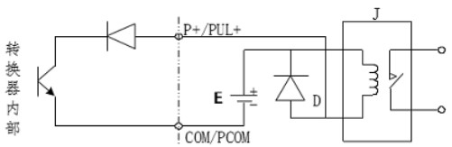 3.由端子 IN+和 IN-引出線接啟動按鈕或啟動控制信號(參見圖 3.7),用來實現(xiàn)定量控制啟動同步。當按一下啟動按鈕,轉換器記錄當前累積量,并根據(jù)定量值計算出目標累積量,開始計數(shù)。當目標值到,輸出繼電器信號。
