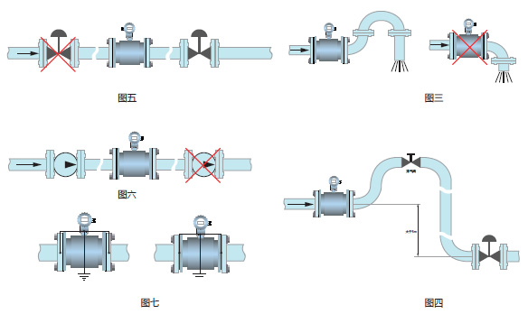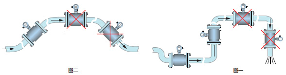為了改善渦流與流場畸變的影響,流量計安裝的前、后直管段長度有一定要求,否則會影響測量精度(也可安裝整流器,盡量避免在靠近調節(jié)閥和半開閥門之后安裝)。