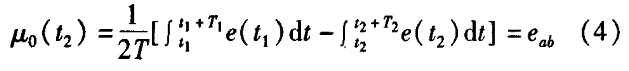 dn200分體式污水流量計一般都采用工頻交流電源供電,其電源電壓的幅值和頻率的變化都會給dn200分體式污水流量計帶來電源性干擾噪聲。對電源電壓的幅值變化,因采用多級集成穩(wěn)壓,一般而言電源電壓的幅值變化對電磁流量的測量精度影響不大。當電源電壓的頻率波動時,雖然其波動范圍有限,但對dn200分體式污水流量計測量精度影響較大。為了解決工頻干擾問題,實現(xiàn)對流體流速感應電勢e柚信號的準確測量,需利用以下基本關系:①勵磁周期為工頻周期的整數(shù)倍,即勵磁頻率為50/nHz(n為偶數(shù));②正負勵磁下的同相位采樣。圖2是對應低頻矩形波勵磁形式下的典型電勢信號形式,按上述關系在一個勵磁周期下,若假設t。和t:點為工頻干擾的等效干擾點,且采樣寬度T=T1=T2,則e –ab的基本算式為: